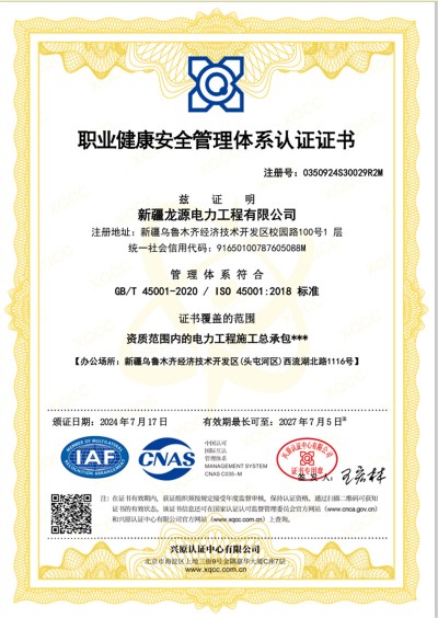 職業(yè)健康安全管理體系認(rèn)證證書(shū)